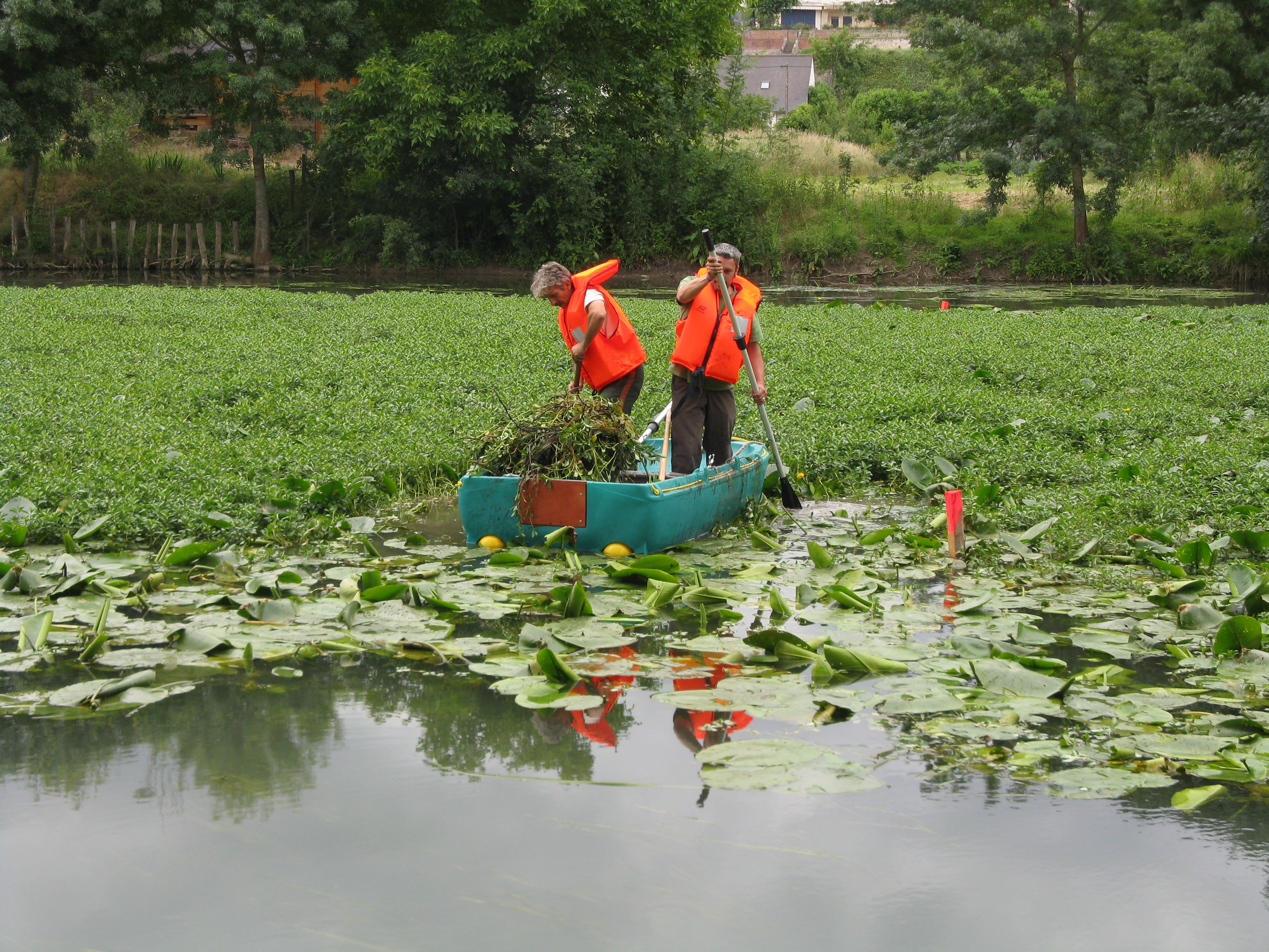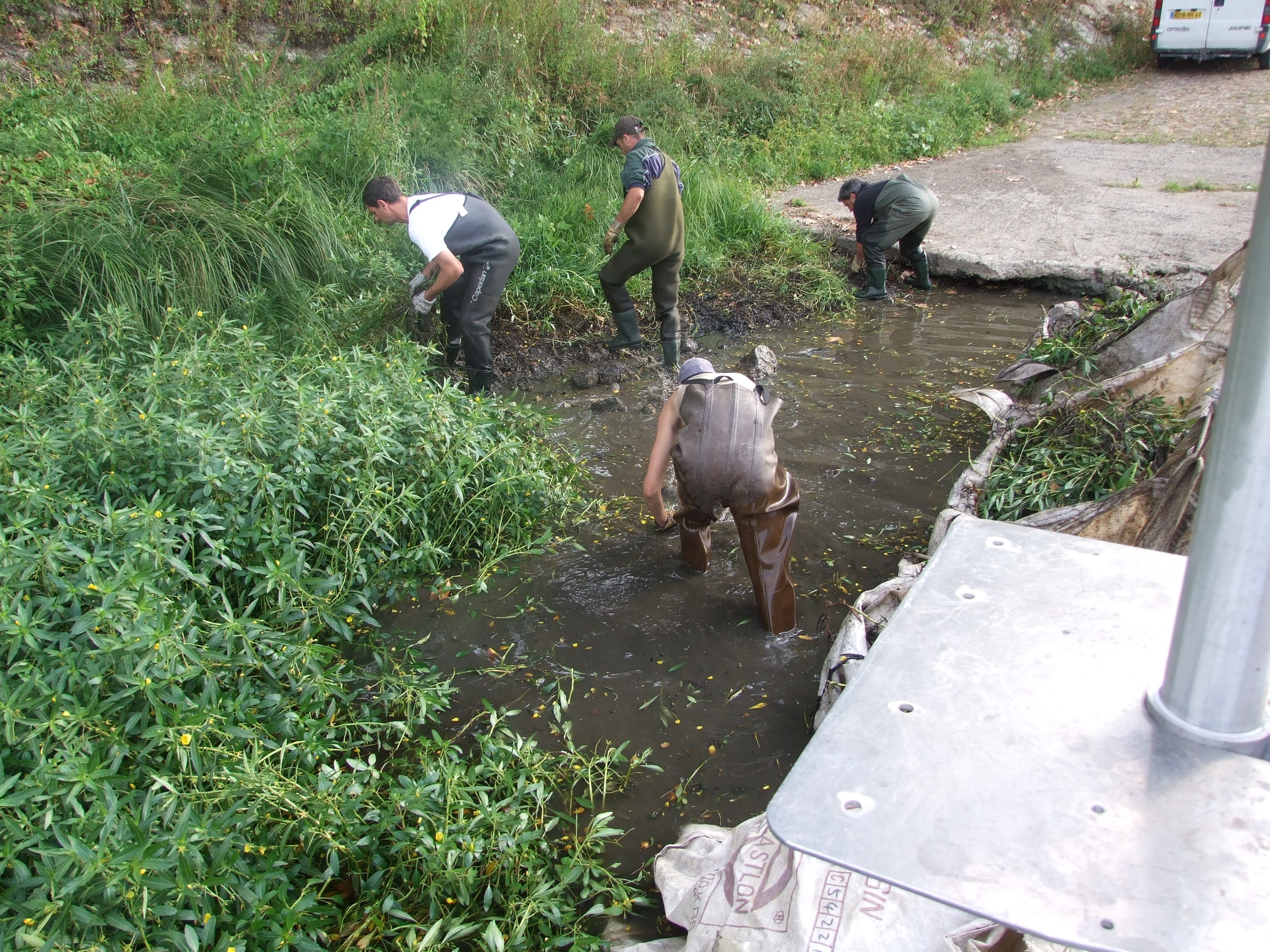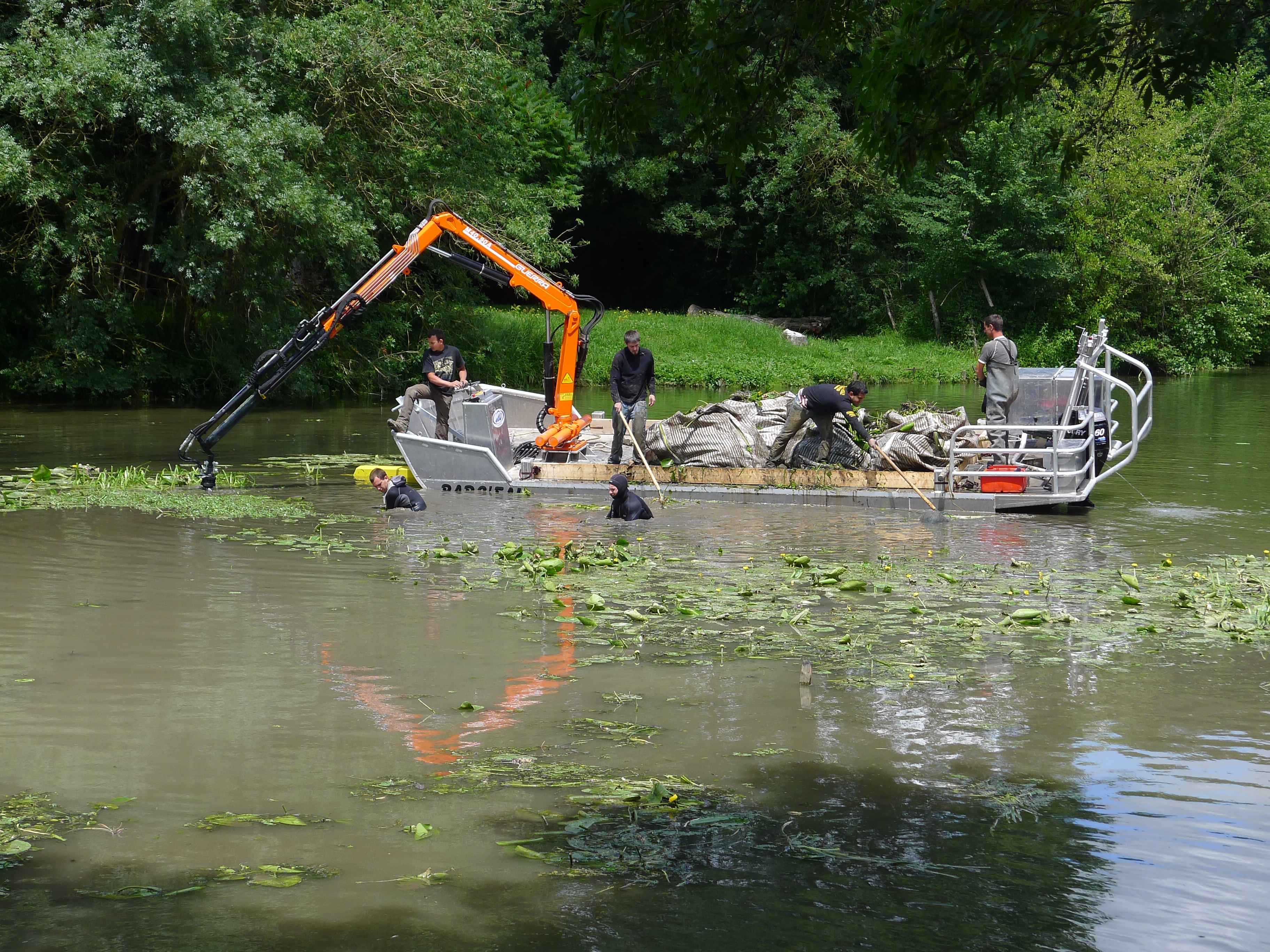 L’arrachage manuel se pratique sur des sites difficiles d’accès et sur des zones de moindre importance à partir d’une barge.