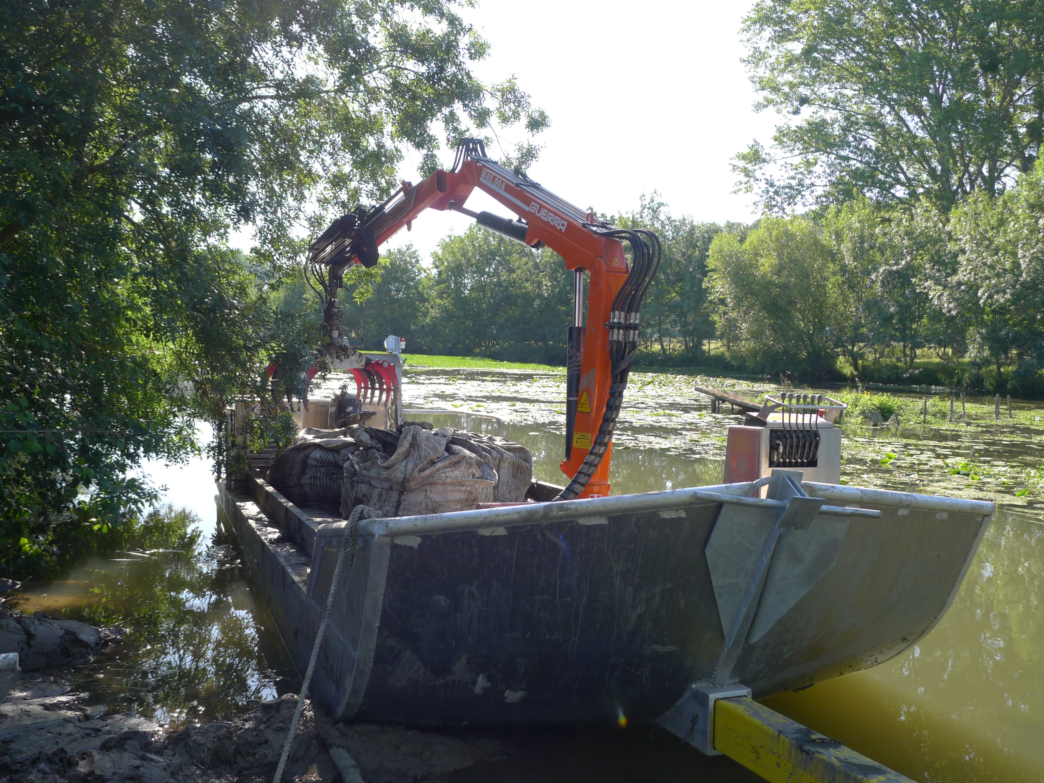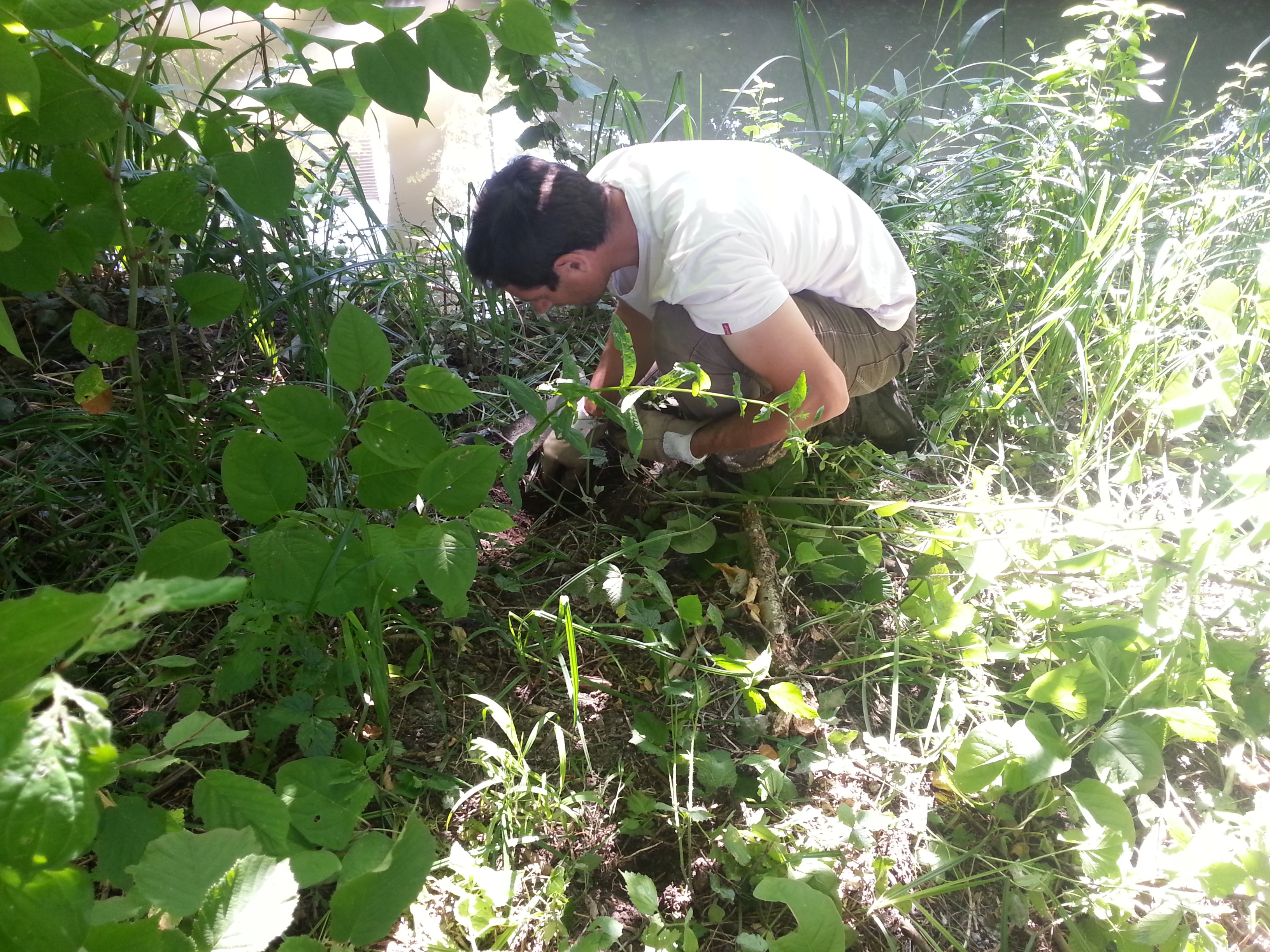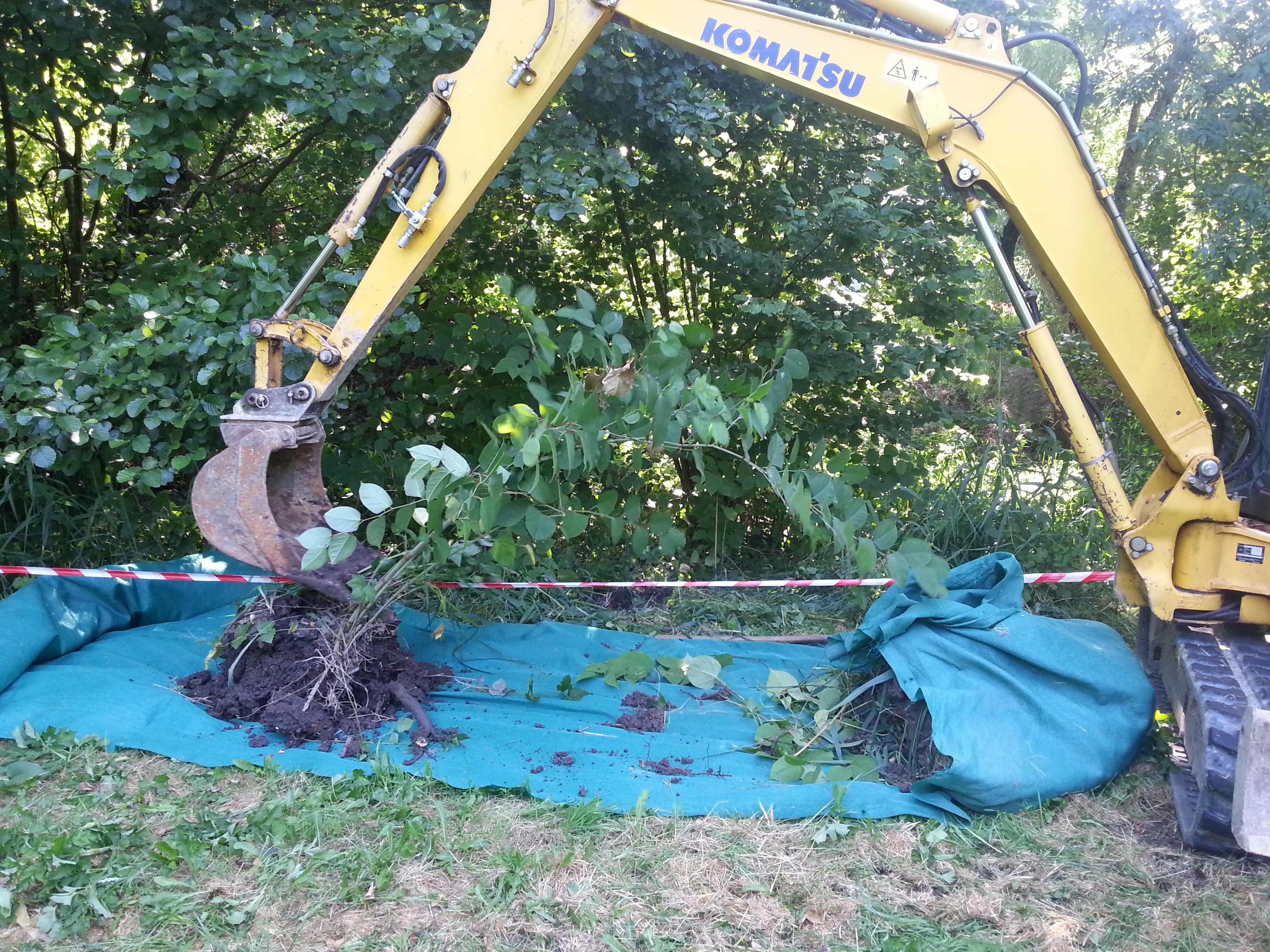 L’arrachage mécanique se pratique sur des surfaces fortement contaminées et accessibles à des engins de chantier depuis la berge.